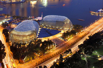 Singapore's premier arts venue hosts a diverse range of dance, music and theatre performances, in addition to captivating visual arts exhibitions. In addition to the Concert Hall and Theatre there are a number of studio theatres used for solo recitals, dances presentations and experimental theatre. The outdoor theatre, overlooking a stunning skyline along the waterfront at Marina Bay, hosts performances ranging from music to dance and theatre attracting numerous visitors, include passers-by. The Esplanade has a number of other spaces that showcase the collaboration with community groups and development of the arts in Singapore.